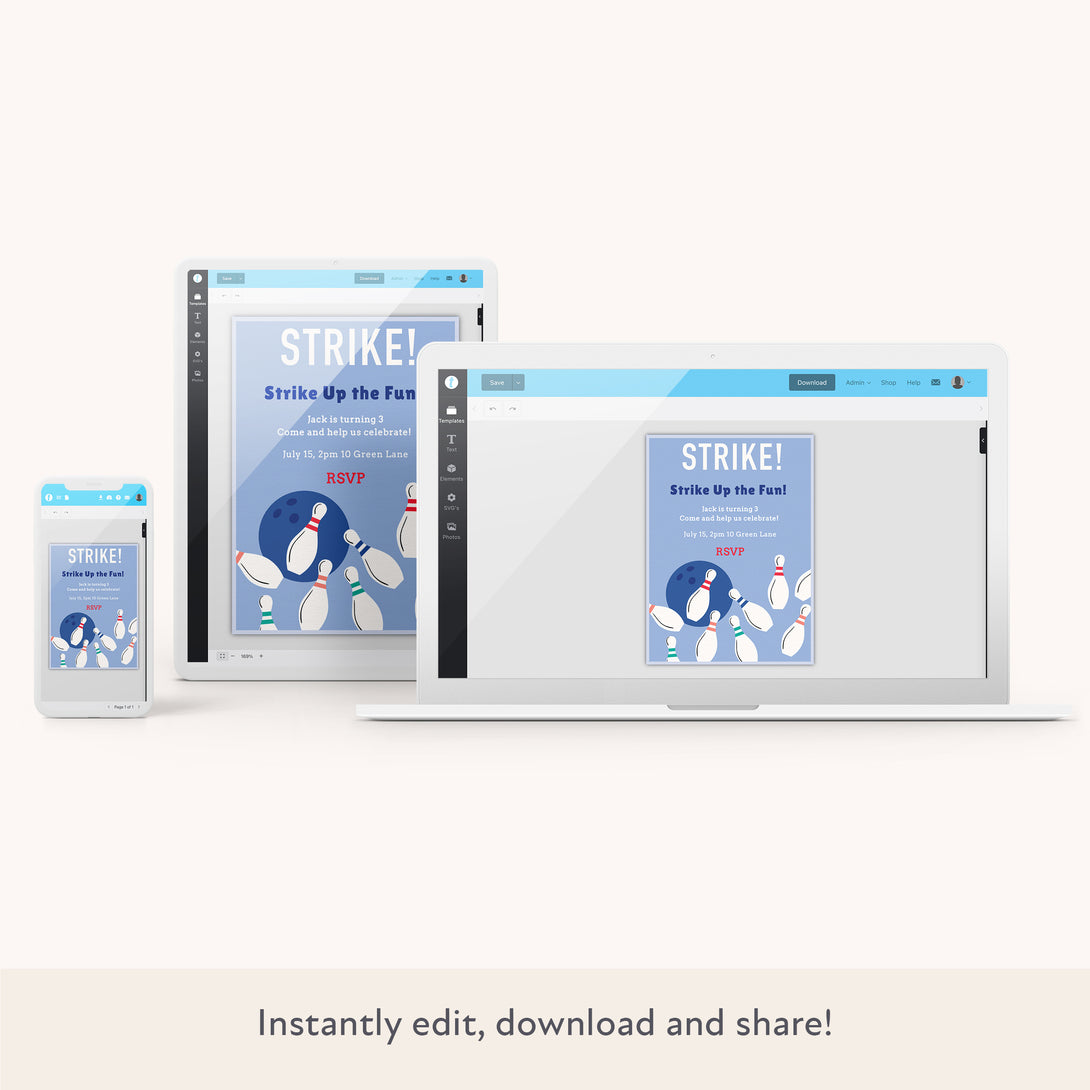 Strike up some fun with these bowling-themed invitations, perfect for sporty parties and pin-tastic celebrations. Simply add the details of your celebration, including the name, date, time and party address, to personalise it and make it truly unique.
