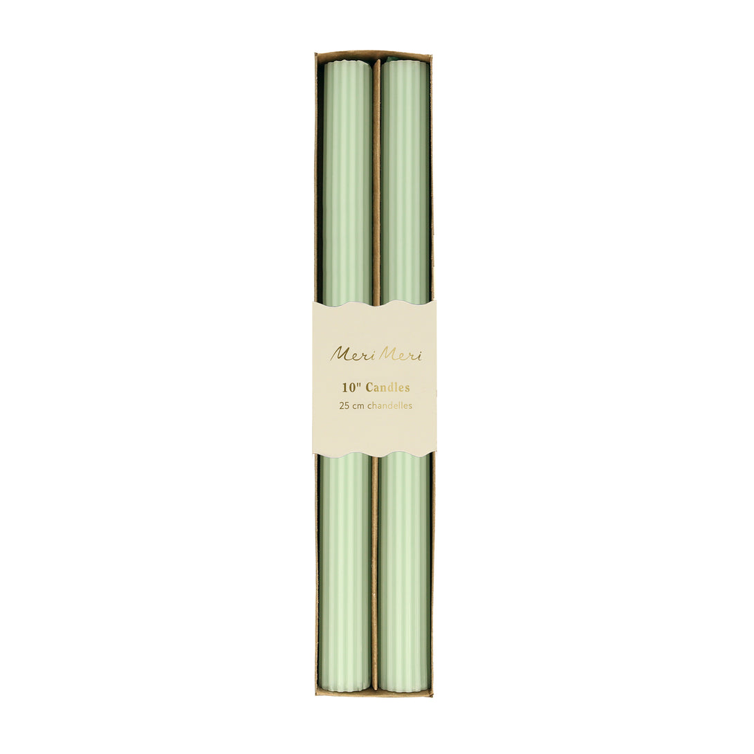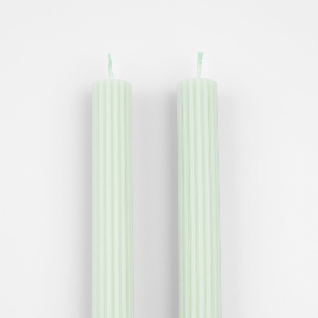 - 2 Tall ridged wax candles in mint